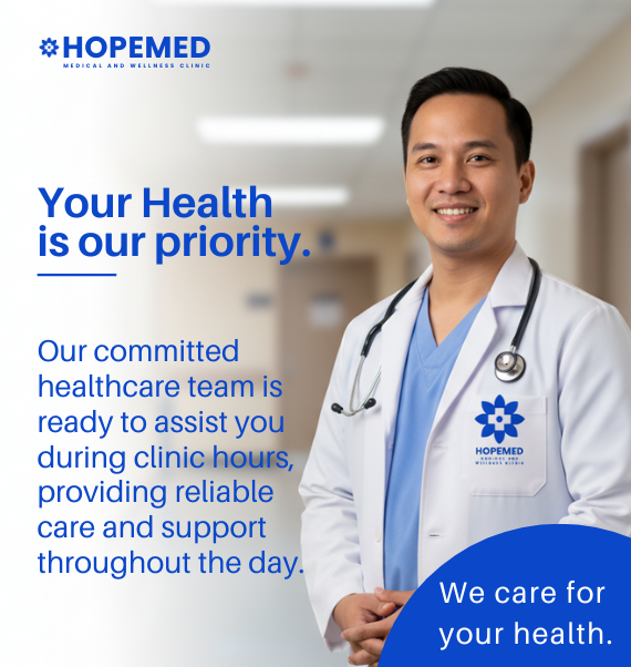HopeMed Medical & Wellness Clinic is a primary healthcare center in the Philippines, offering comprehensive medical care, wellness program, laboratory, diagnostic test, pharmacy and vaccination under one trusted facility.